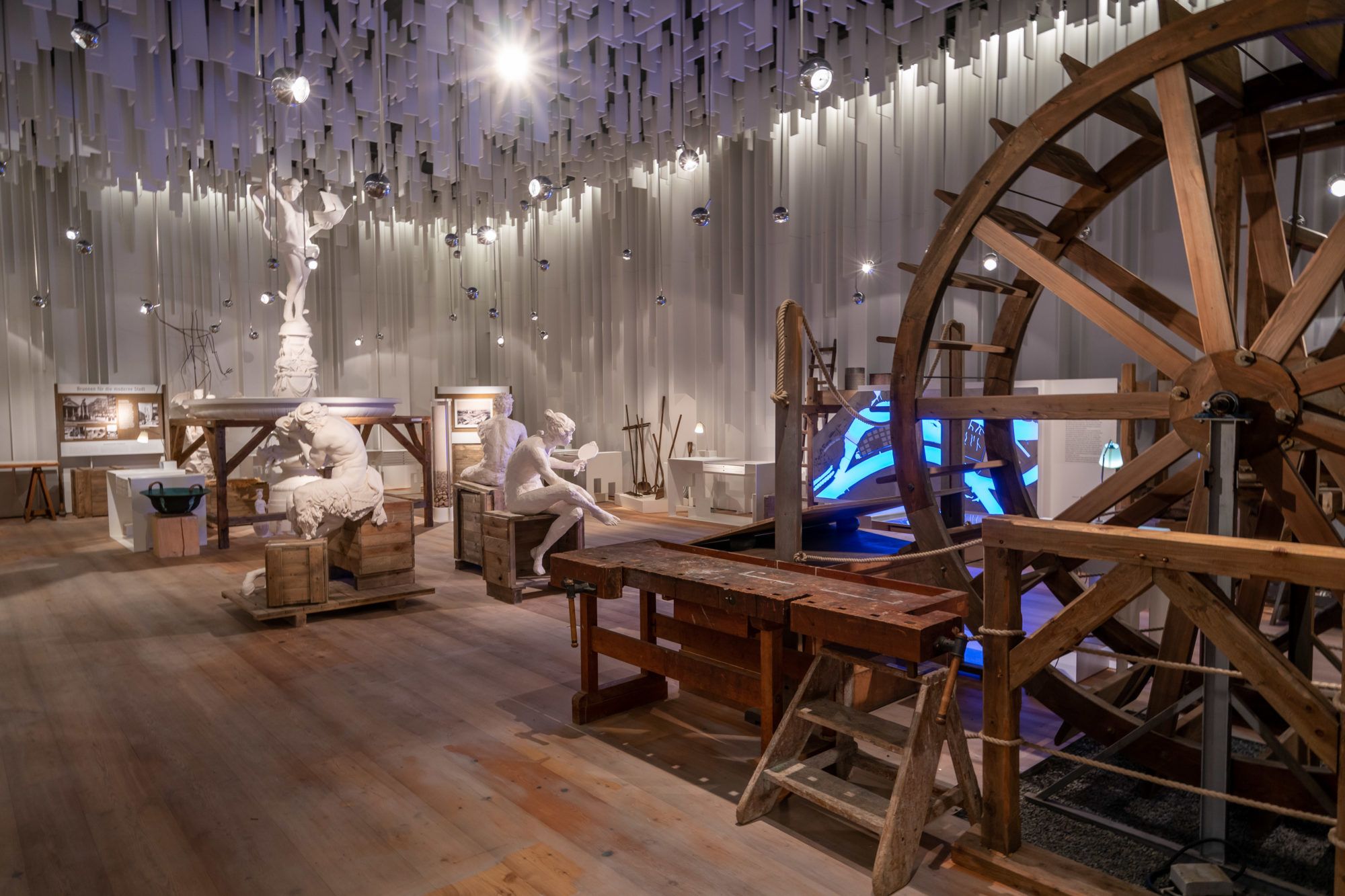 Die Tour verläuft über das denkmalgeschützte Ensemble aus Filterbecken, Schieberhäuschen und historischer Villa. Im weiteren Verlauf werden die landschaftsgestalterische Planung sowie der Ausstellungs-Neubau vorgestellt, in dessen Innenraum die Führung zwischen Modellen kunstvoller Stadtbrunnen schließlich endet.