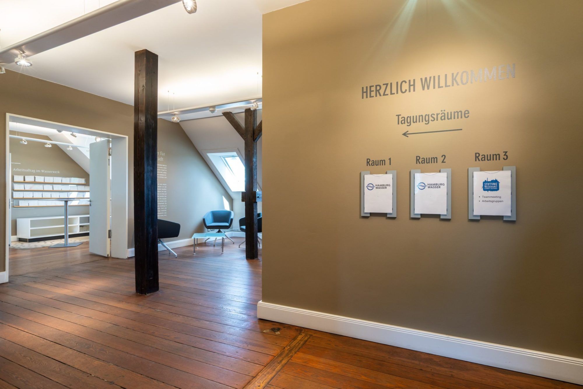 Die modern ausgestatteten Tagungsräume befinden sich im barrierefrei erreichbaren Obergeschoss der historischen Villa aus dem Jahr 1893. Früher wurden hier Wasserproben untersucht, heute bieten die Räume kreative Nutzungsmöglichkeiten.
