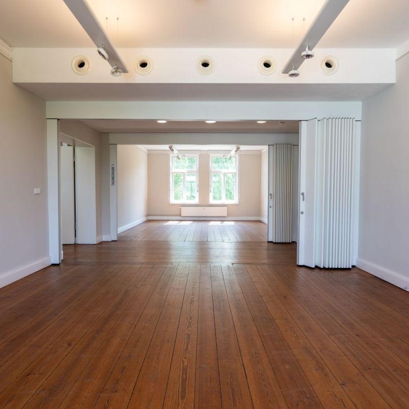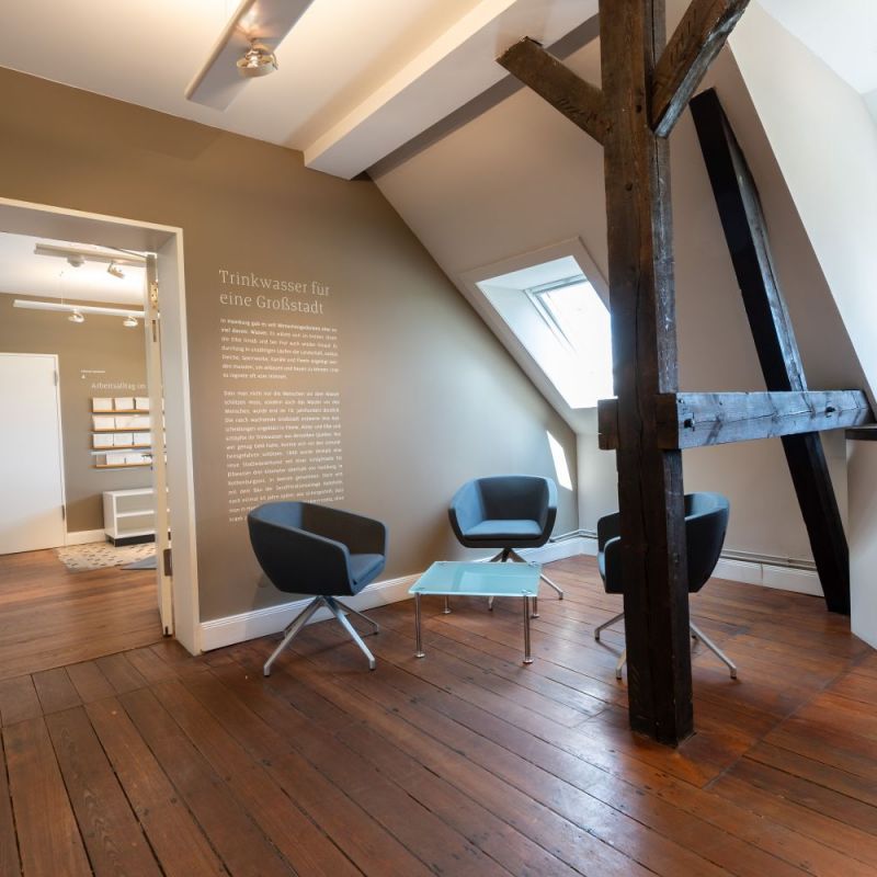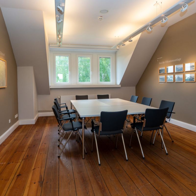 Die modern ausgestatteten Tagungsräume befinden sich im barrierefrei erreichbaren Obergeschoss der historischen Villa aus dem Jahr 1893. Früher wurden hier Wasserproben untersucht, heute bieten die Räume kreative Nutzungsmöglichkeiten.